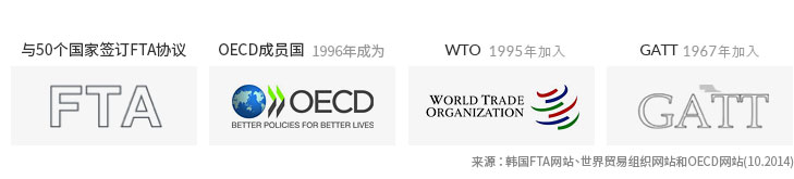 来源 : 韩国FTA网站、世界贸易组织网站和OECD网站(10.2014)