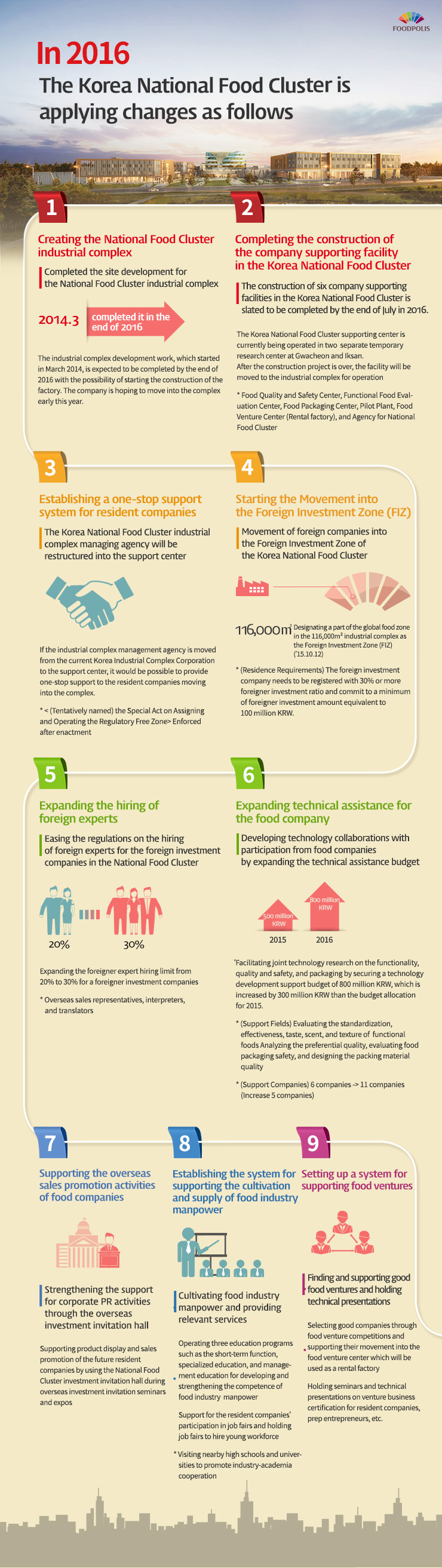The Korea National Food Cluster industrial complex managing agency will be restructured into the support center