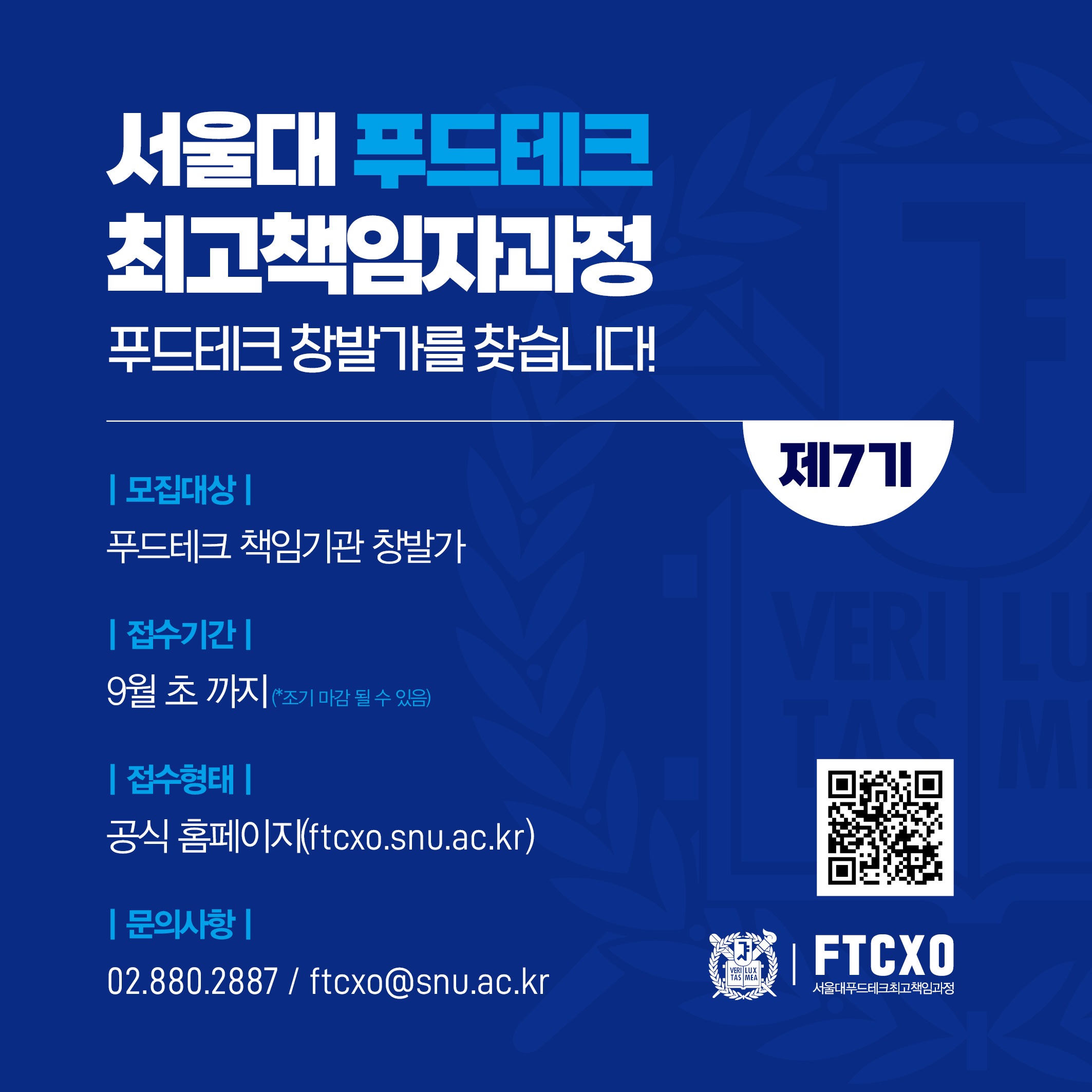 <정보공유> 서울대학교 푸드테크 최고책임자과정 모집 안내
