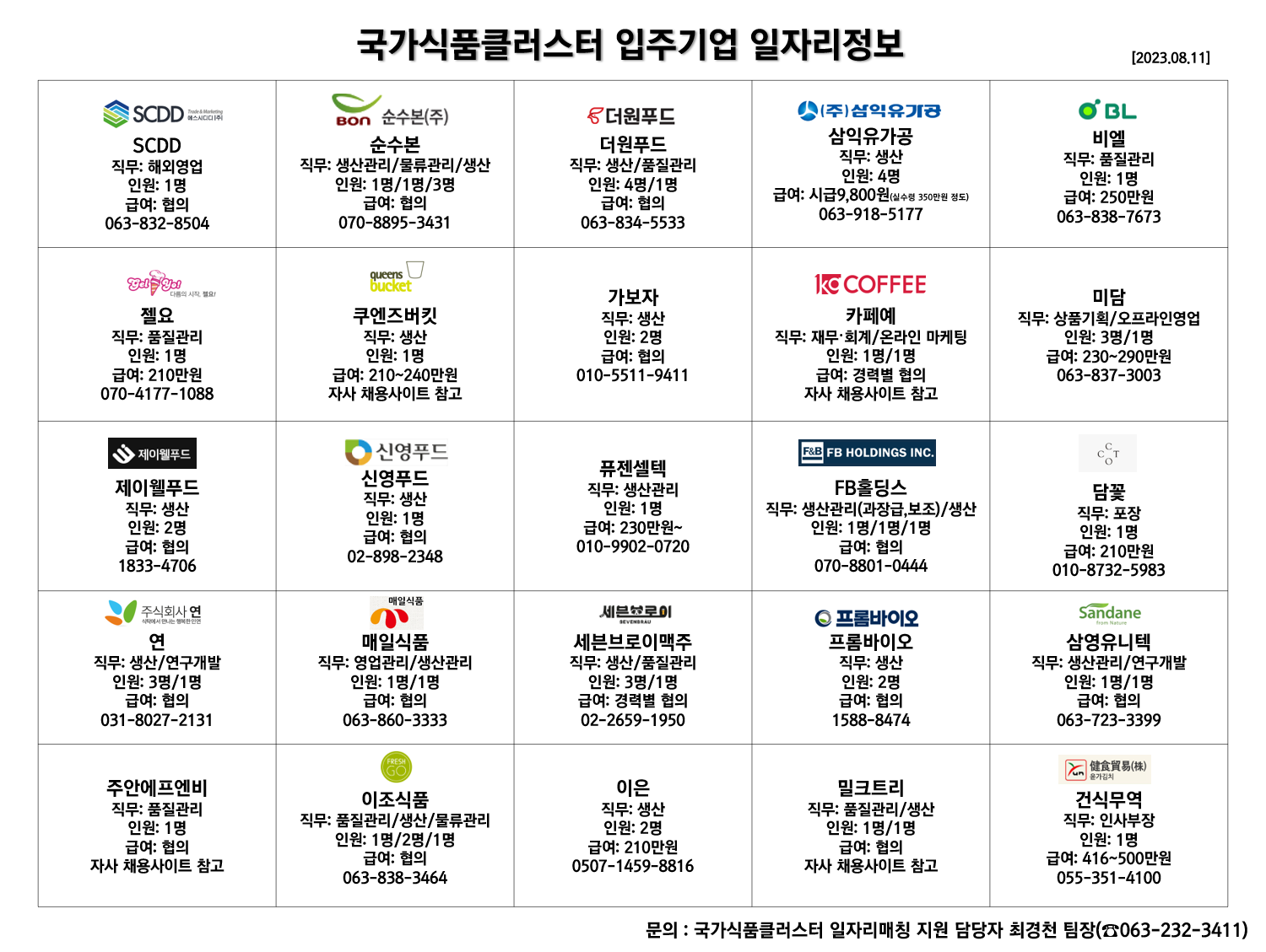 2) 한국식품산업클러스터진흥원 입주기업 채용정보