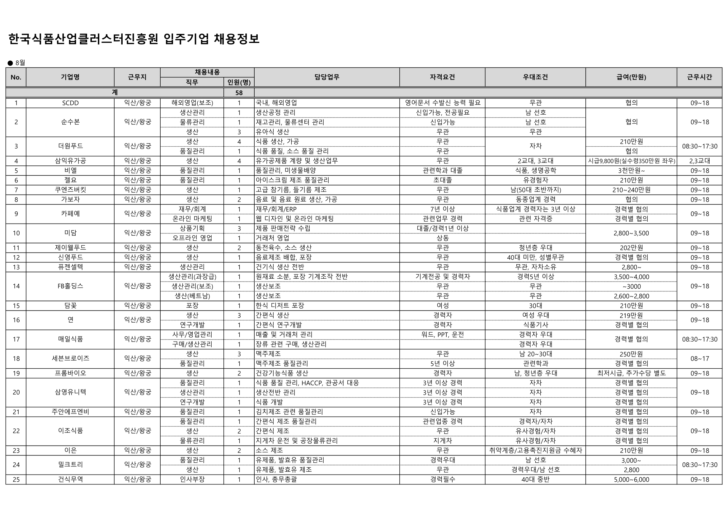 입주기업 채용정보 일람(8월)