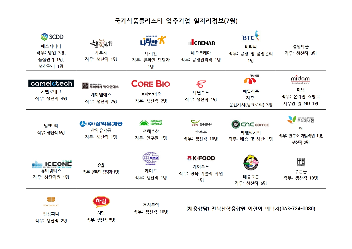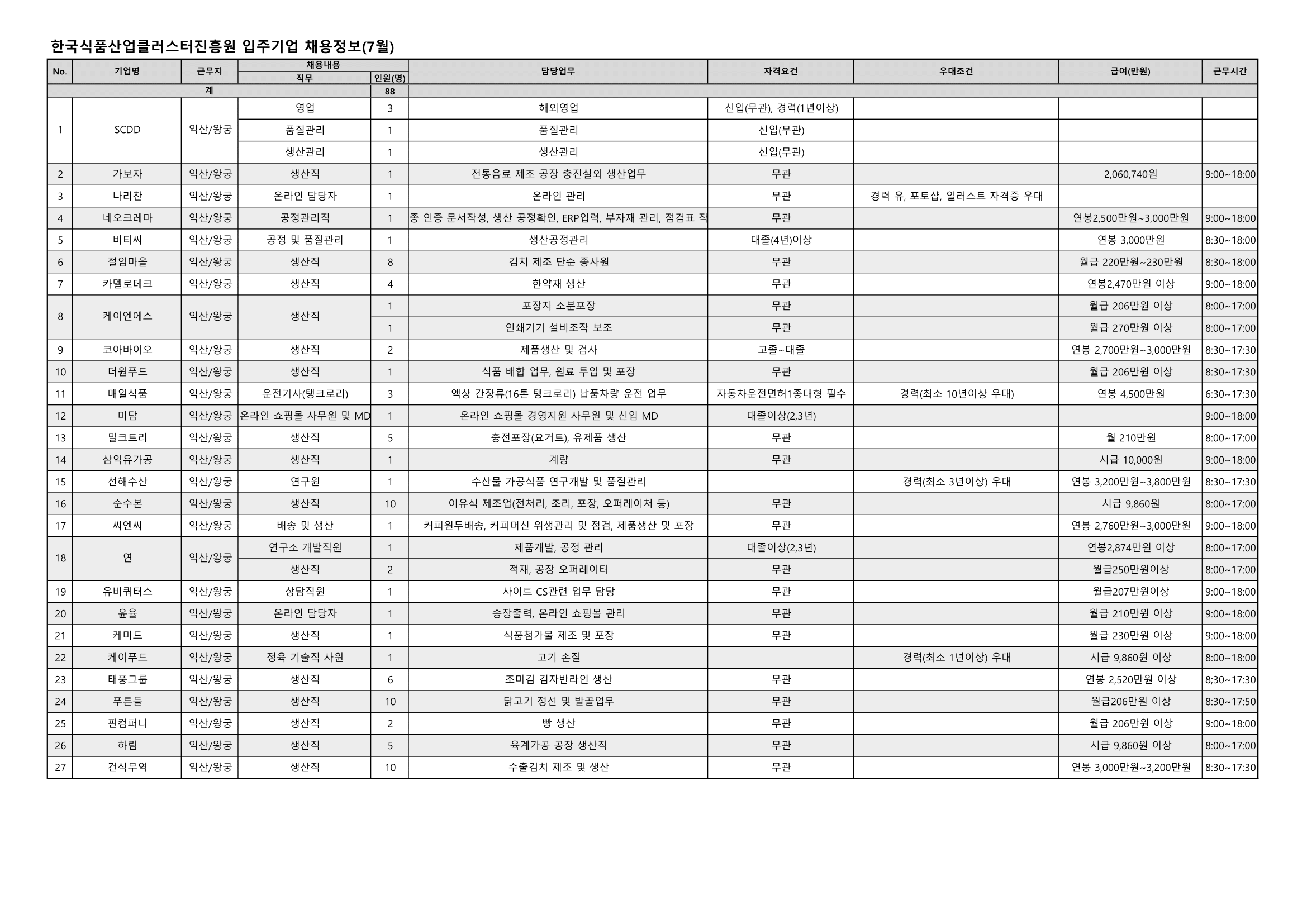 입주기업 채용정보 일람(7월)