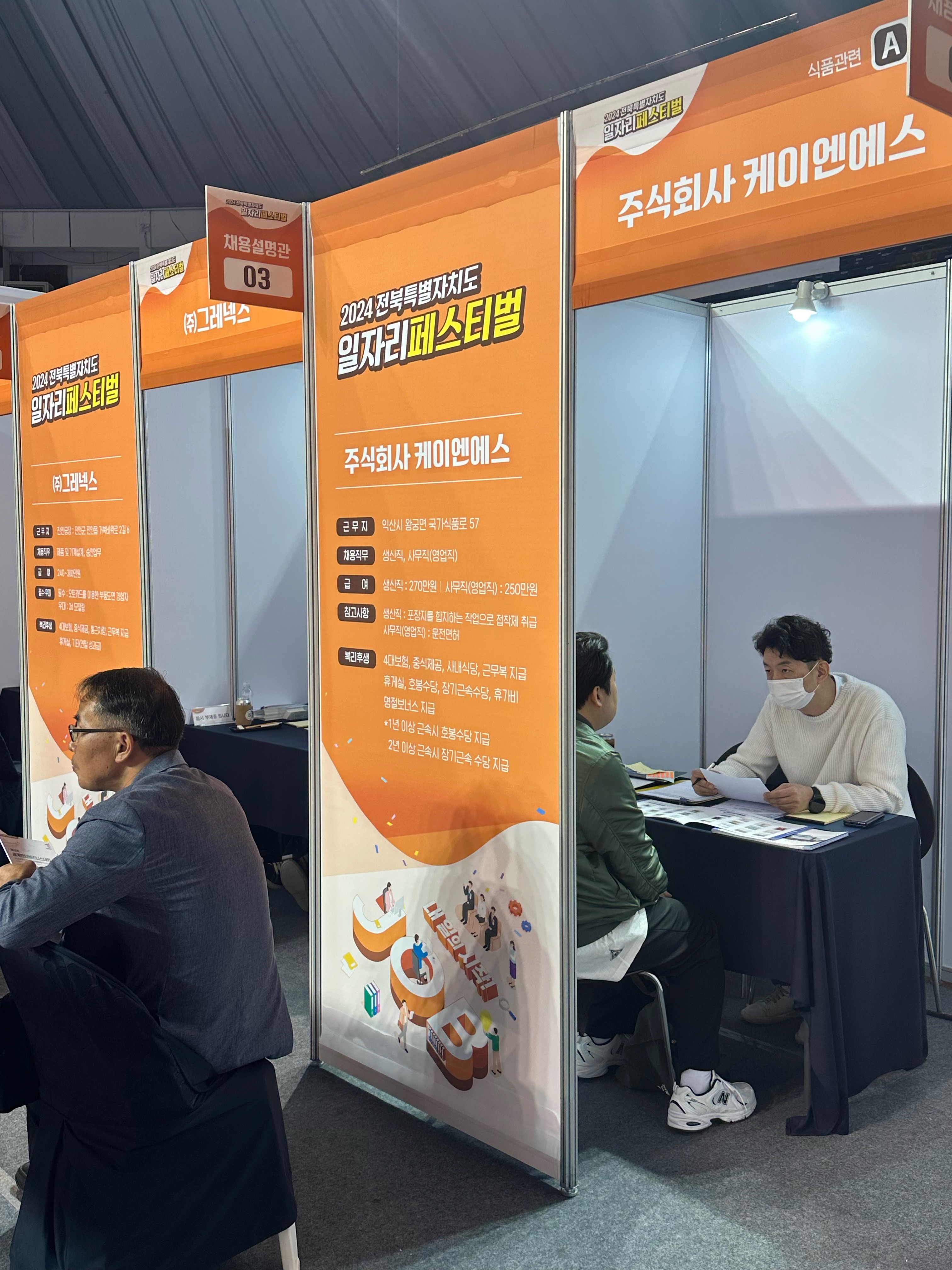 한국식품산업클러스터진흥원(이사장 김덕호, 이하 식품진흥원)은 ‘2024 전북특별자치도 일자리페스티벌(이하 박람회)’과 연계해 국가식품클러스터 입주기업의 구인·구직 현장면접을 지원했다고 31일 밝혔다.