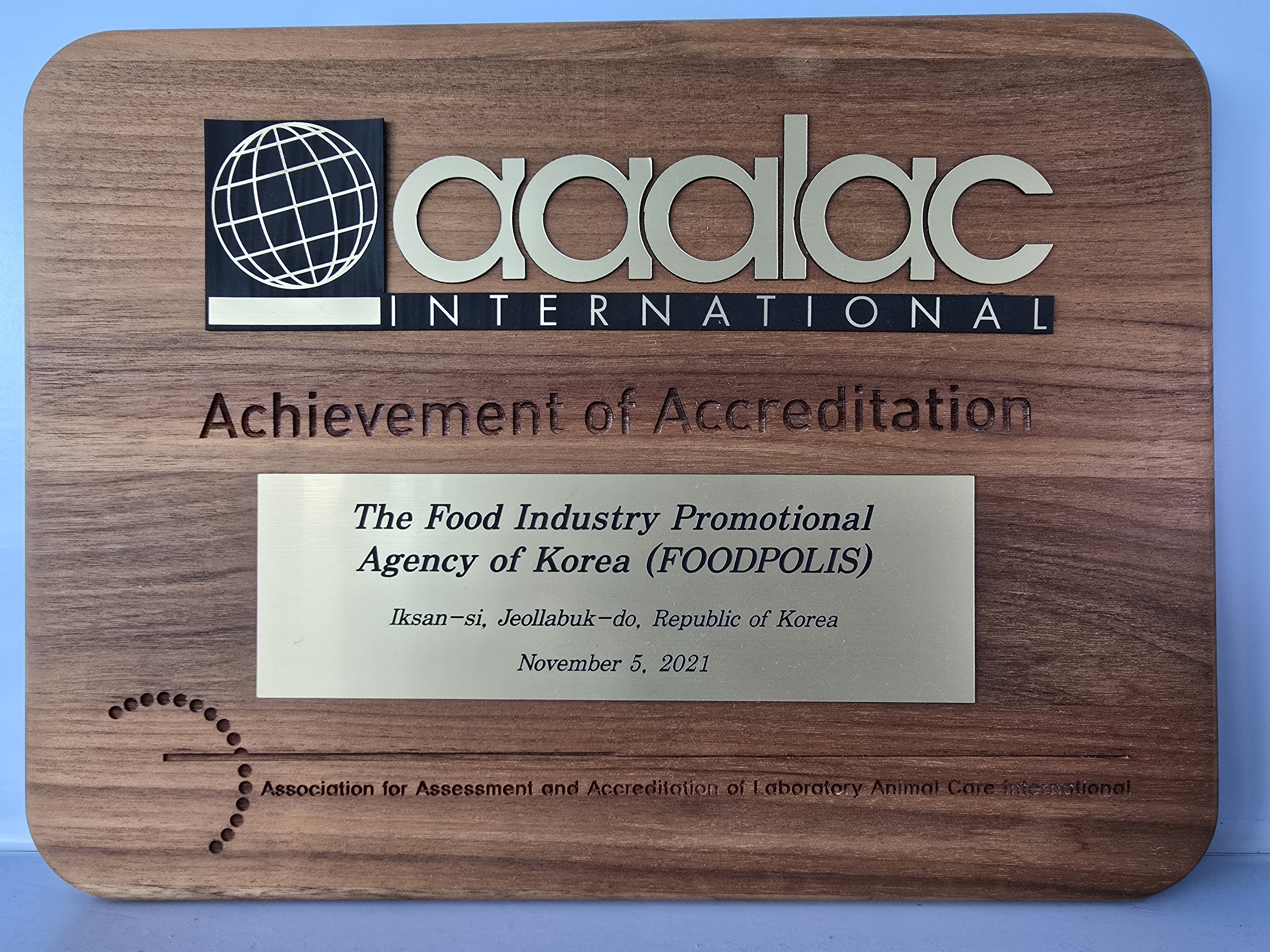 식품진흥원이 재획득한 AAALAC은 실험동물의 인도적 취급과 관리 수준을 평가해 부여하는 국제 인증이다. 그 권위를 인정받아 전 세계 50여 개국 1,100여 개 이상의 병원, 대학, 제약 및 생명공학 분야 연구기관 등이 인증을 받고 있다.