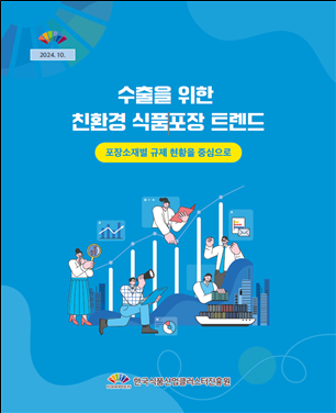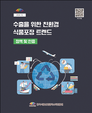 이번 간행물은 친환경 식품 포장의 정의를 시작으로 △ESG 관련 정책 및 공시 의무화 △EPR 제도(생산자책임재활용제도) △재생 원료 활용 제도 △환경표지 상호인정협정(MRA) △주요 수출국별 인증 제도 등 친환경 식품 포장 정책 및 인증 정보를 담고 있다.