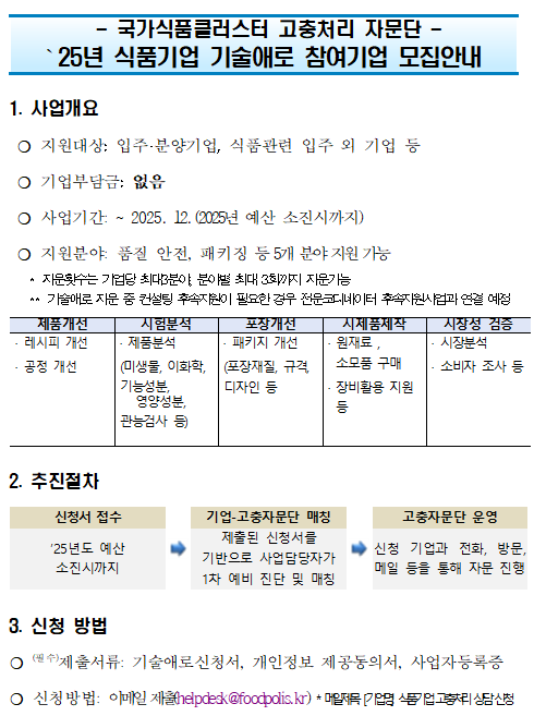 2025년 전문 코디네이터 기술애로 해결지원사업 참여기업 모집공고문