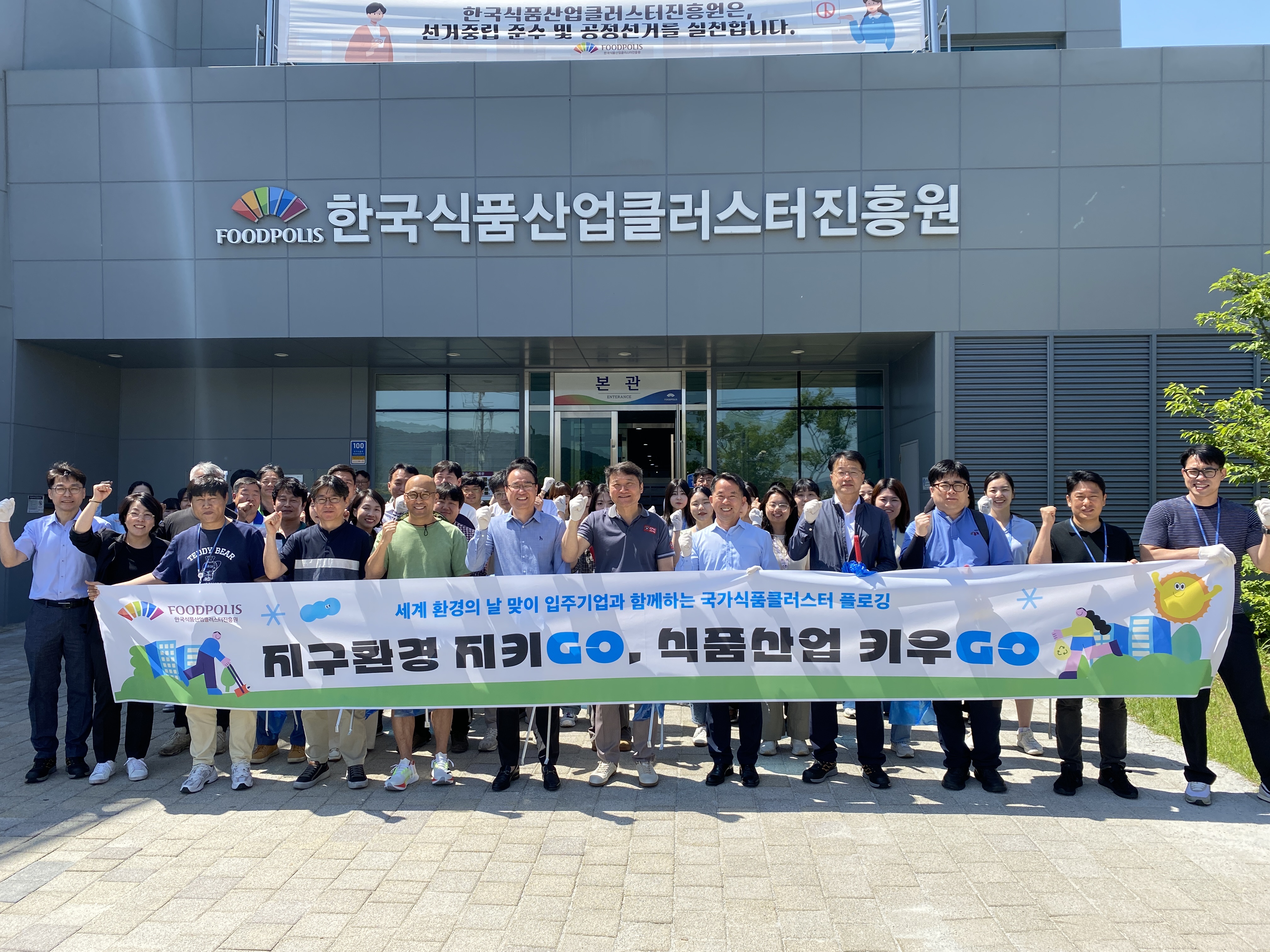 식품진흥원은 지난 3월 31일부터 4월 27일까지 28일간 임직원·입주기업·국민을 대상으로 ‘2025년 환경 구호’ 공모전을 실시해 총 117건의 응모작을 접수했으며, 이 중 최우수작으로 선정된 ‘지구환경 지키GO, 식품산업 키우GO’를 올해 환경주간을 비롯한 주요 환경 프로그램의 대표 슬로건으로 채택했다.