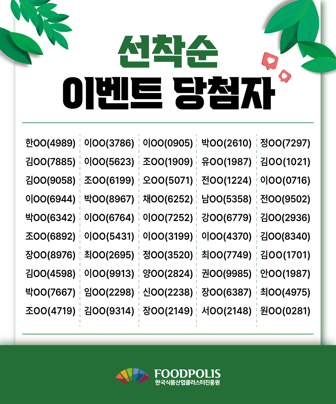 선착순 이벤트 당첨자 발표 안내