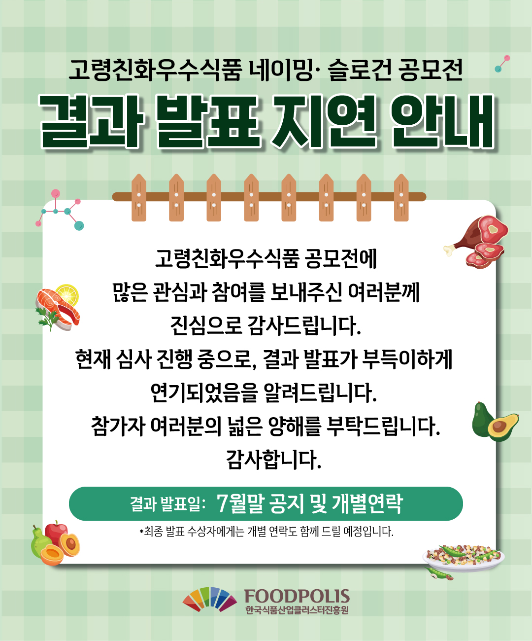 현재 심사가 진행 중으로, 결과 발표 일정이 부득이하게 연기되었음을 안내드립니다.