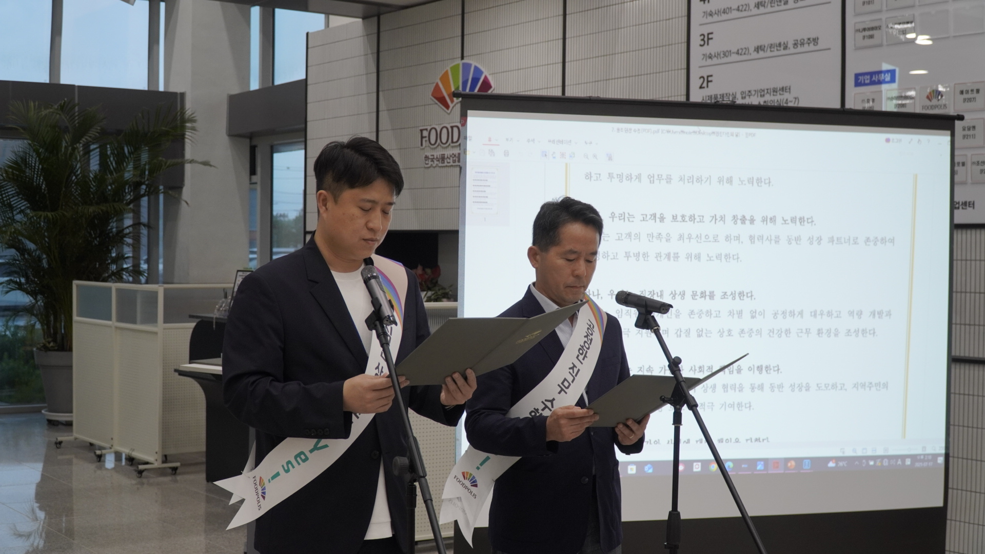 한국식품산업클러스터진흥원(이사장 김덕호, 이하 ‘식품진흥원’)은 7월 ‘청렴 다짐의 달’ 운영과 연계하여, 7월 17일 전 임직원의 청렴의식 고취를 위한 윤리헌장 개정 선포식을 개최했다고 밝혔다.
