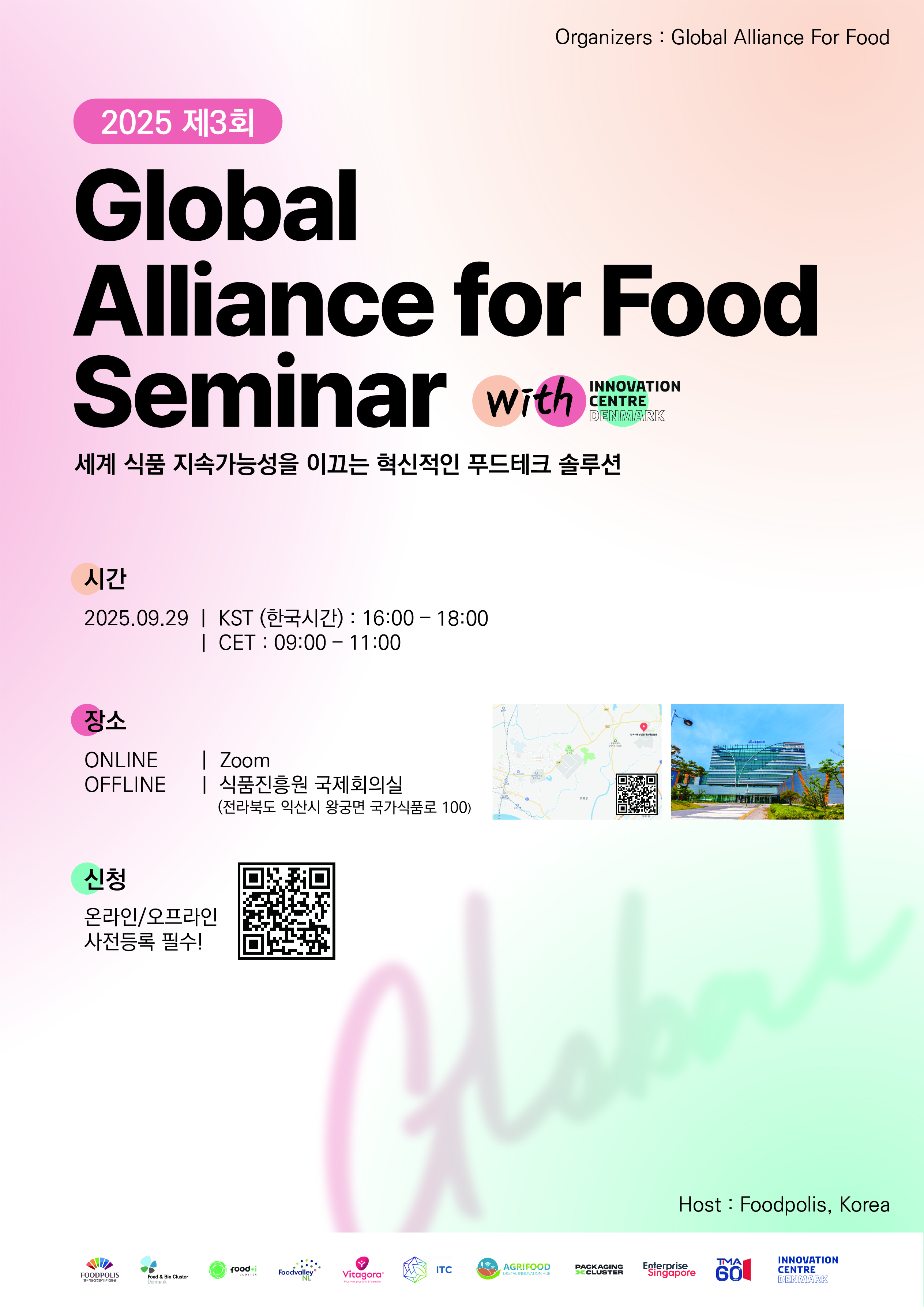 글로벌 푸드 얼라이언스의 세 번째 세미나가 9월 29일에 온라인/오프라인으로 진행됩니다.